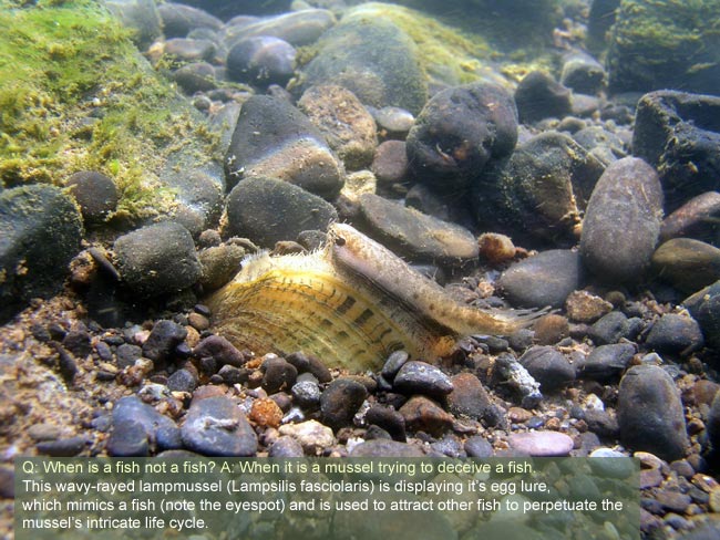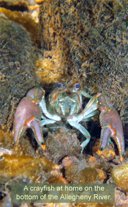 from shallow, pristine areas to deep, A WPC companion study to the bathymetry project has uncovered many species of freshwater mussels, fish, and macroinvertebrates in the Allegheny River Lock and Dam section. Species identified include rare and endangered mussels from Pools 4 and 8, such as the northern riffle shell (Epioblasma torulosa rangiana) and the round pigtoe (Pleurobema sintoxia). WPC is currently completing Pool No. 4, located near Freeport. Still ahead is the plotting and mapping of the Pittsburgh Pool (beginning at the Point and extending to Lock and Dam 2 at Aspinwall), Pool No.2 (from Aspinwall to Lock and Dam 3 at Acmetonia), and the C.W. Young Pool (from the dam at Acmetonia to Lock and Dam 4 at Natrona).