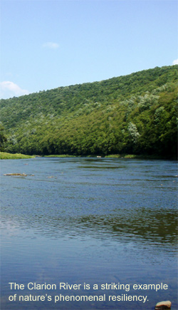 River’s past flora and fauna is thin. The Clarion’s direct link to the rich But the flow of life in the Clarion River began to ebb by the early 1900s. In 1909, Carnegie Museum biologist Arnold E. Ortmann tagged the Clarion as ‘one of the worst streams in the state” for industrial pollution. Tanneries, chemical wood plants, and a pulp plant dumped their noxious wastes into the River’s upper reaches. Acid drainage from coal mines tainted its lower reaches. Ortmann’s description of the Clarion at the time is graphic: “The water of the Clarion River...is black like ink and retains its peculiar color...to where it empties into the Allegheny.” A 1915 sanitary survey of the Clarion River noted that “fish have been practically exterminated.” And so it stood until the 1960s, when a multifaceted effort to clean up the Clarion River took hold. Recognizing the comeback potential of the river and the scenic and recreational value of the lands surrounding it, the late Roger Latham, WPC board member and outdoors editor of The Pittsburgh Press, urged the Conservancy to focus conservation efforts in the region. WPC eagerly took up the challenge. To date, WPC has protected 11,600 acres along what is now a federal Wild and Scenic River and regional treasure. To aid in recreation and plan for the River’s future, WPC and partners also completed a water trail map and the recent Clarion River Greenway Plan. With a little help, the formerly downtrodden Clarion River is rebounding. Some mine drainage problems remain in the lower river, but it’s clear that the phoenix-like comeback of the Clarion River is great news for the water, land, and life of the Upper Allegheny Basin. Chuck Williams is WPC’s Watershed Manager for the Upper Allegheny River. Chuck is very familiar with the history, culture, geography, and ecology of the watershed, having conducted research there for nearly 15 years in conjunction with the U.S. Forest Service and other entities. He’s authored two books on the history of the Allegheny Watershed and is a former professor and chair of biology at Clarion University.